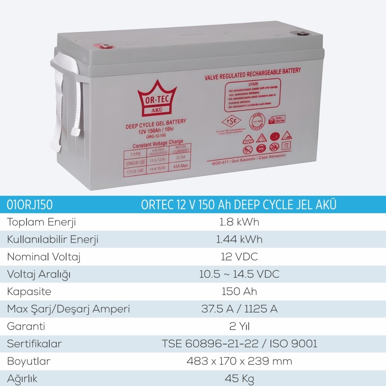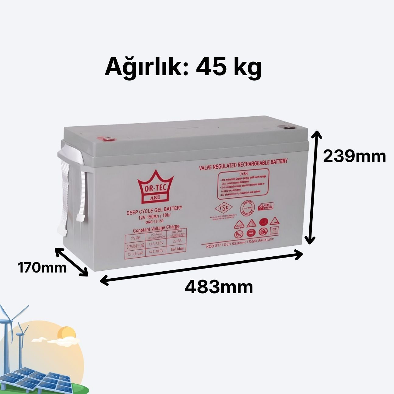 • ⚠️ Ağırlık ve Ölçü Uyarısı: 150Ah aküler fiziksel olarak büyük ve ağırdır (Ortalama 40-45kg). Sipariş vermeden önce kullanacağınız alanın ölçülerini mutlaka kontrol ediniz.