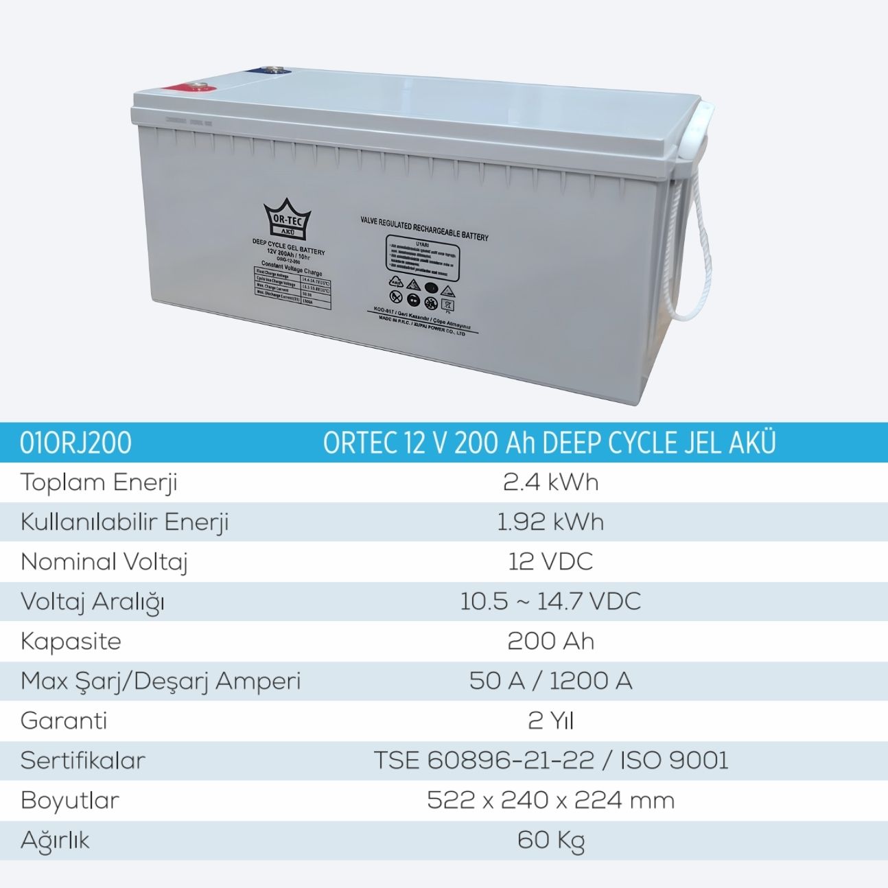 • ⚠️ Kritik Ağırlık Uyarısı: 200Ah aküler ortalama 60kg ağırlığındadır. Taşınması ve montajı için iki kişi gerekebilir. Lütfen ürünü koyacağınız zeminin ve alanın ölçülerini sipariş öncesi mutlaka kontrol ediniz.